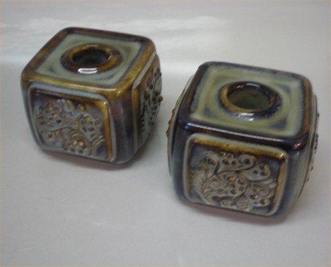 B&G 7332 Par firkantede lysestager 6 x 8 cm med grøn glasur og relief kr. 450