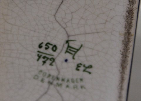 Beskrivelse: Royal Copenhagen Aluminia fajance RC Aluminia 650-472 Firkantet blomsterkasse 13.5 x 22 cm (Sloth-Møller 1907) Aldersslitage