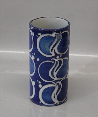 Beskrivelse: Royal Copenhagen Aluminia fajance 663-3505 Fajance Blå rund vase 14 cm Ellen Malmer Baca Aluminia