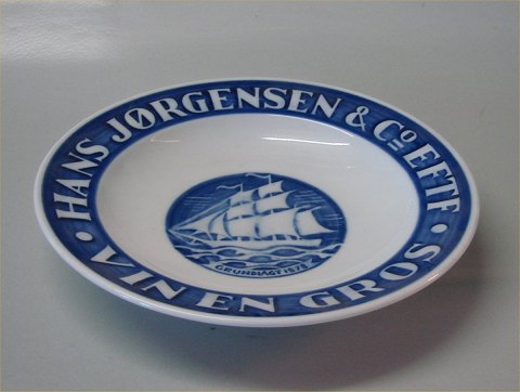 Bing & Grøndahl B&G Reklame skål med sejlskib 18 cm Hans Jørgensen & Co Eftf. Vin en gros. Grundlagt 1878