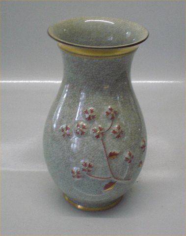 473-3242 Kgl. Grå vase med røde blomster i relief 18 cm