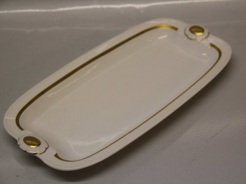 Beskrivelse: Bing & Grøndahl Gulnare med guldkant 096 Bakke, aflang 29 cm (364) I fin og hel stand.
