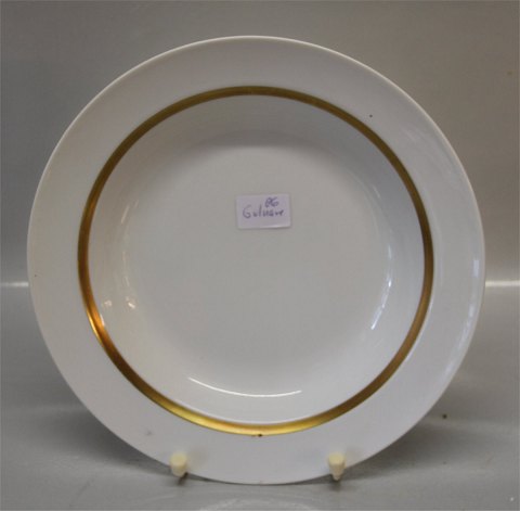 Beskrivelse: Bing & Grøndahl Gulnare med guldkant 022 Stor dyb tallerken 24 cm (322) I fin og hel stand.