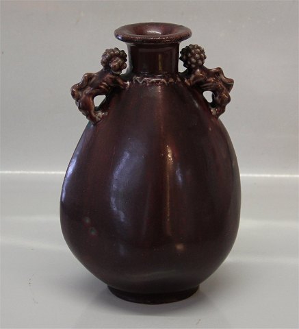 20877 Kgl. Vase med to løvehanke Okseblodsglasur Bode Willumsen feb. 1948 23 cm høj og 16 cm bred