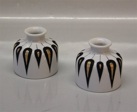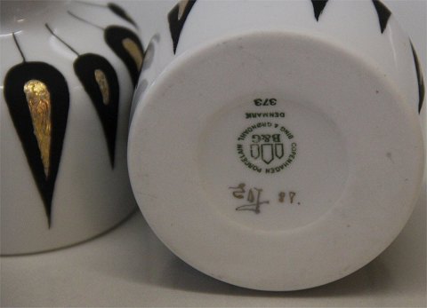 Bing & Grøndahl B&G 375 Moderne vase med guld og blad dekoration 7 cm 2 stk på lager