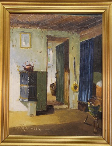 Maleri: Interiør Osvald Rasmussen 51 x 41 cm
