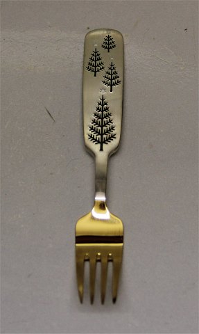 Beskrivelse: Anton Michelsen Julegaffel 1950 Vinterskov Forgyldt sølv med emaljedekoration. Design: Paul Høyrup