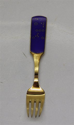 Beskrivelse: Anton Michelsen Julegaffel 1964 Stjernebilledet Orion Forgyldt sølv med emaljedekoration. Design: Inger Hanmann