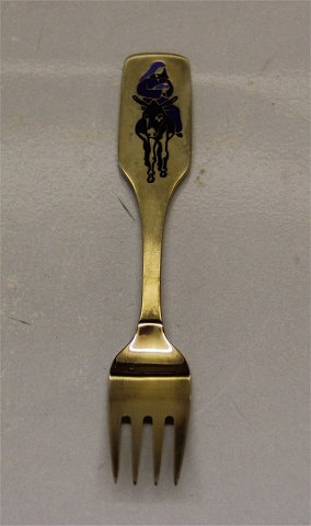 Beskrivelse: Anton Michelsen Julegaffel 1966 Flugten til Ægypten Forgyldt sølv med emaljedekoration. Design: Jørgen Dahlerup