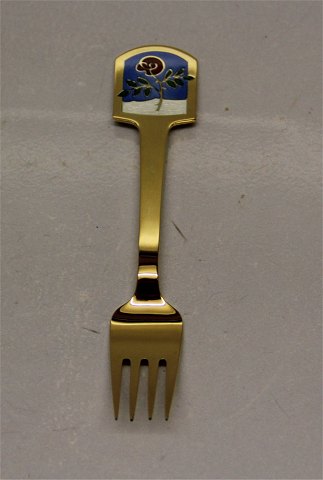 Beskrivelse: Anton Michelsen Julegaffel 1977 Vinterrose Forgyldt sølv med emaljedekoration. Design: Poul Hanmann