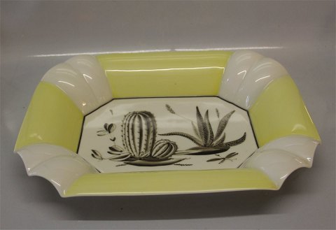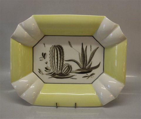 Kongelig Dansk Unika Fad af Thorkild Olsen Gul dekoration med kaktus 35 x 28 cm