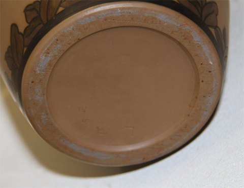 Bornholm, Hjort Keramik Stor Brun Vase 28 cm frugt dekoration L. Hjort Bornholm, # 51