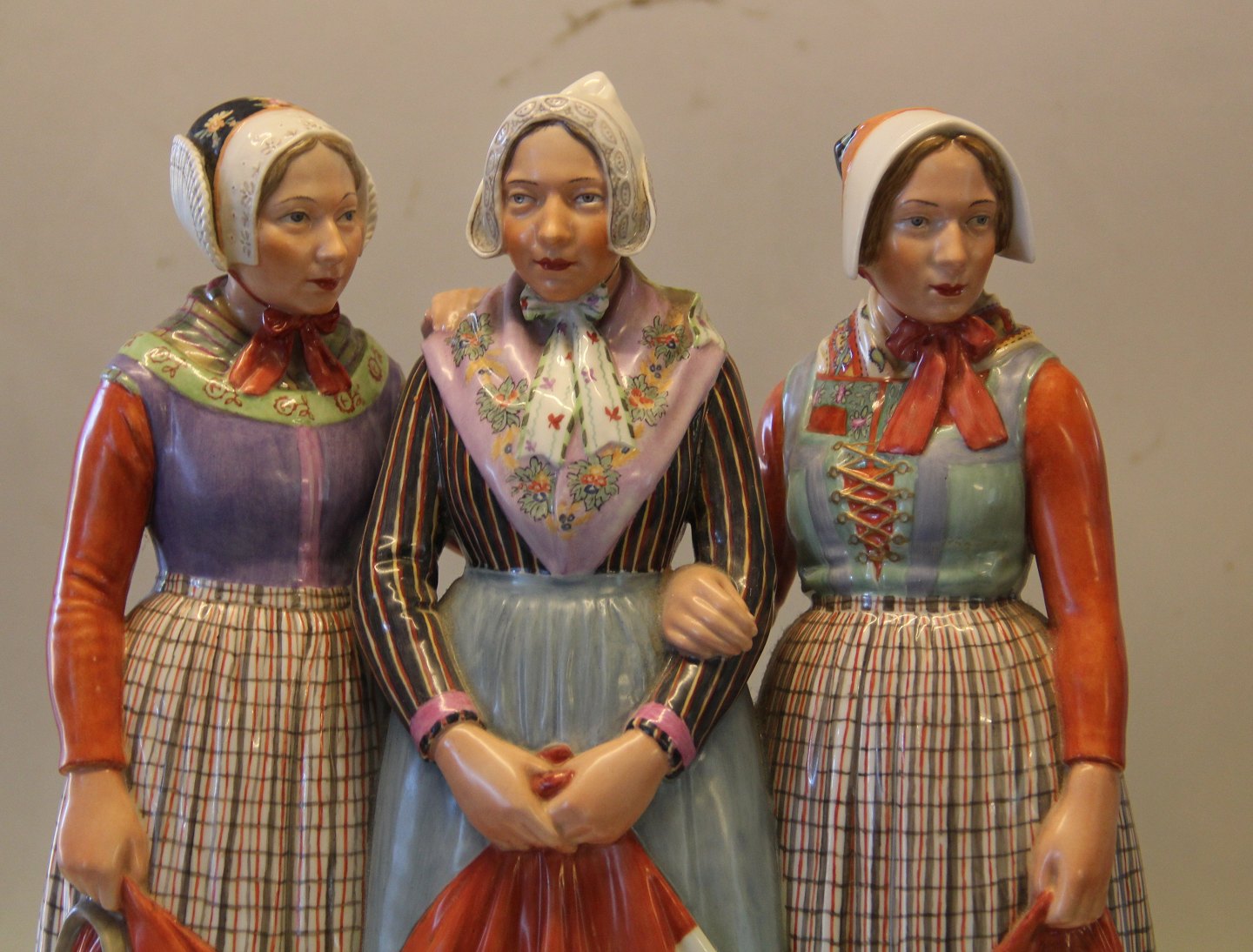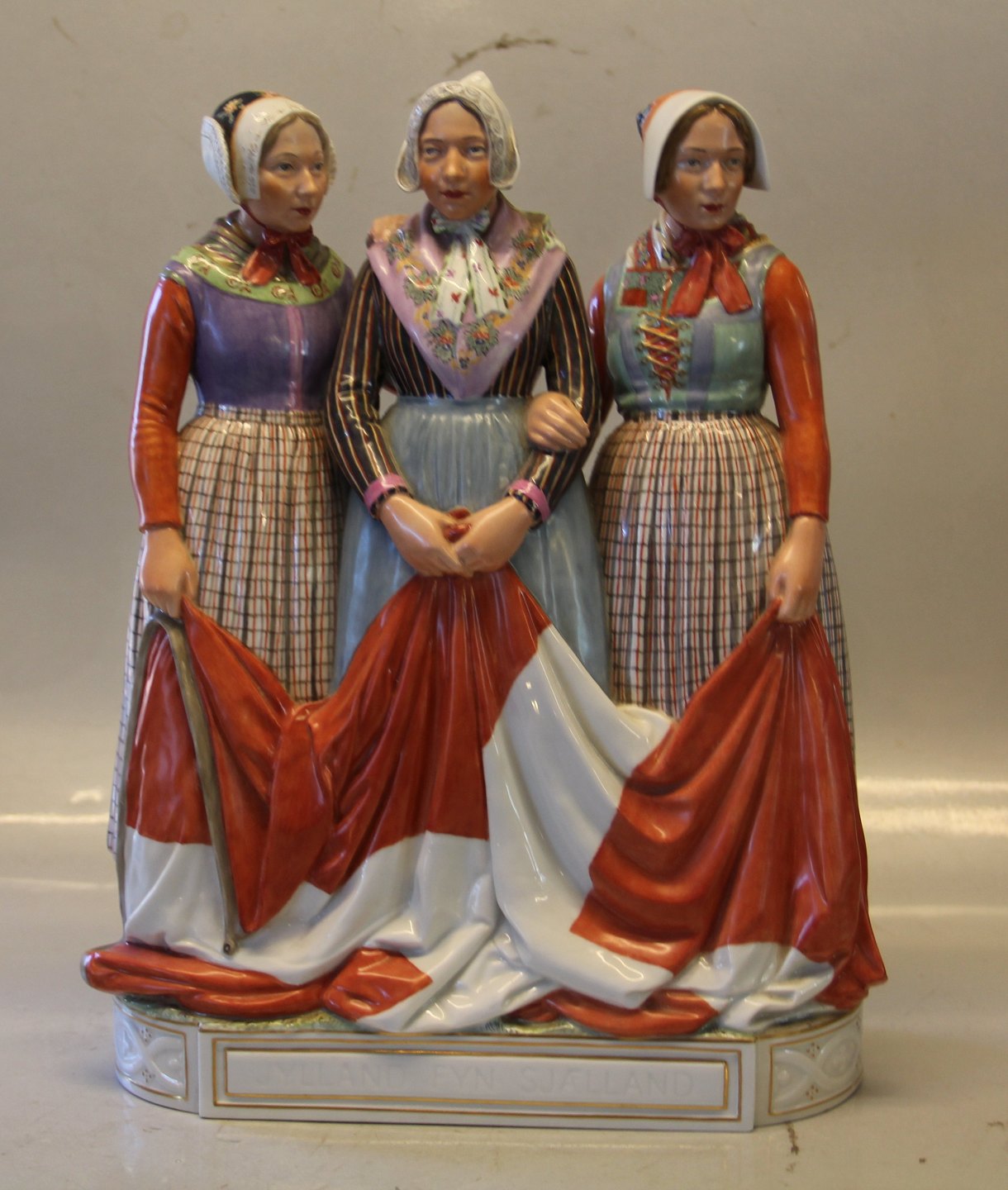 Kongelig Dansk 12226 Kgl. Gruppe på tre i egnsdragter og det danske flag fra Danmark 34 cm