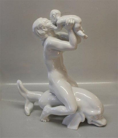 Beskrivelse: Bing & Grøndahl B&G 4057 Kvinde på delfin kysser barn 39 cm Kai Nielsen I fin og hel stand.
