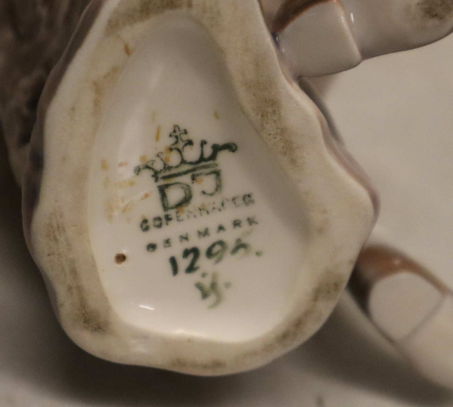 Beskrivelse: Dahl Jensen 1295 Lille pige "Bente" 14,5 cm (DJ). Mærket med kongelig krone og DJ Copenhagen i hel og fin stand. 1. sort