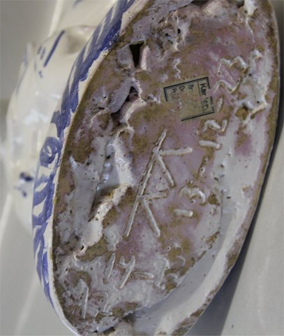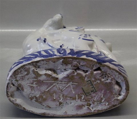 Dansk Stentøj af KNUD KYHN for Kähler Blådekoreret Hjort med kid 18 x 20 cm Knud Kyhn 13/12 1923 KK