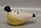 Aluminia kunstfajance 2761 Aluminia gul, hvid og blå blomsterholder - høne 17 x 10.5 cm, januar 1958 Columbine