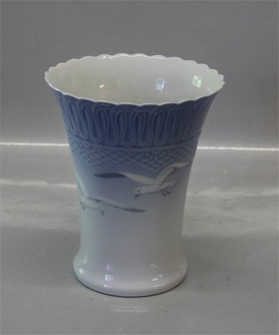 Beskrivelse: Bing & Grøndahl Mågestel uden guldkant 186 Vase mønstret kant 16,5 cm (683). I hel og fin stand