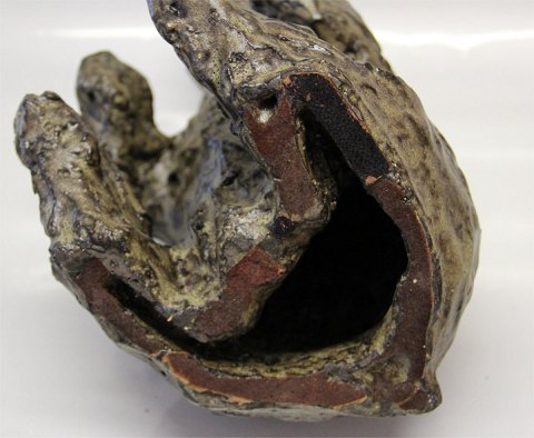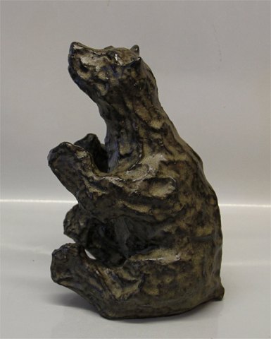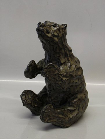: Spændende stor stentøjsbjørn 29 cm Med bronzeret glasur. Uden stempler Kender nogen oprindelsen