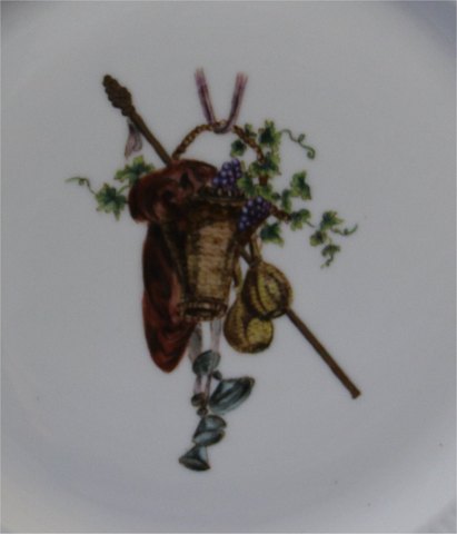 Riflet tallerken med bred guldkant 25 cm Flot malet vinmotiv ca 1960erne