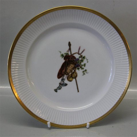 Beskrivelse: TILBUD samlet 10 stk. Kgl. Riflet tallerken med bred guldkant 25 cm Flot malet vinmotiv ca 1960erne fra Royal Copenhagen I hel og fin stand