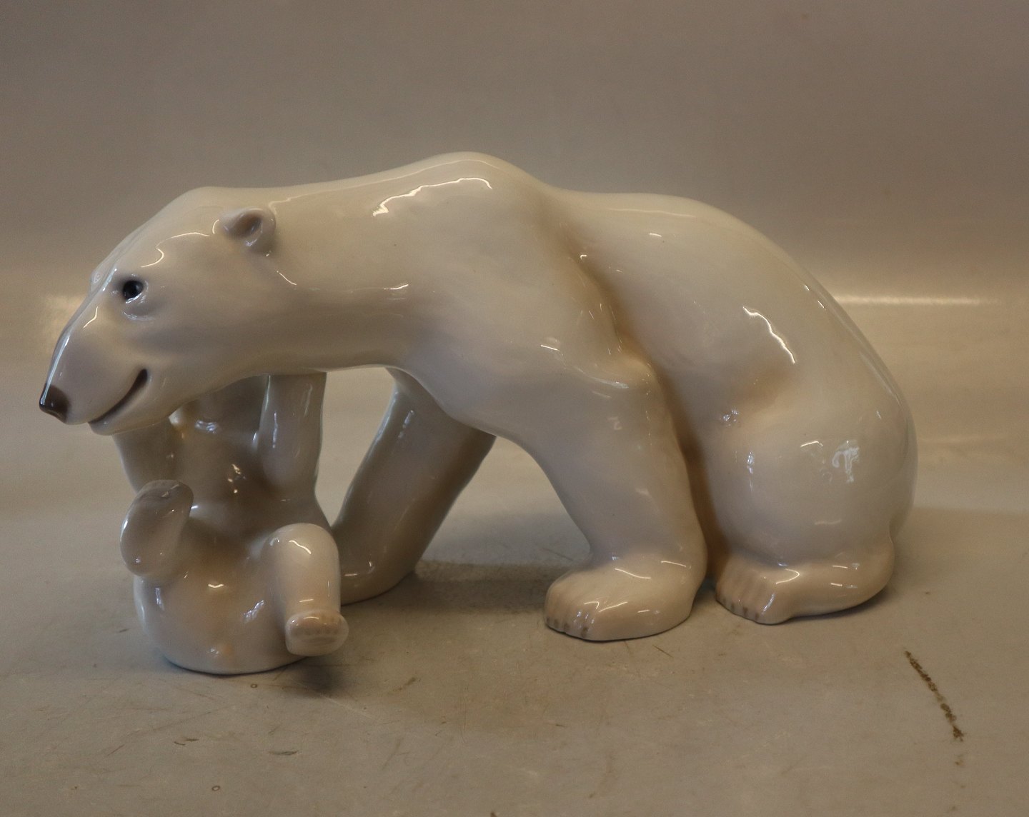 Bing & Grøndahl B&G 2239 Isbjørn med unge 14 x 26 cm I fin og hel stand.