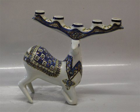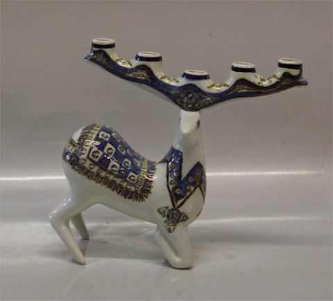 Beskrivelse: Royal Copenhagen Aluminia fajance 3712-495 Hjort 17 x 21 cm, lysestage JG 1969 Jeanne Grut Julelysestage Hjort - Julebuk