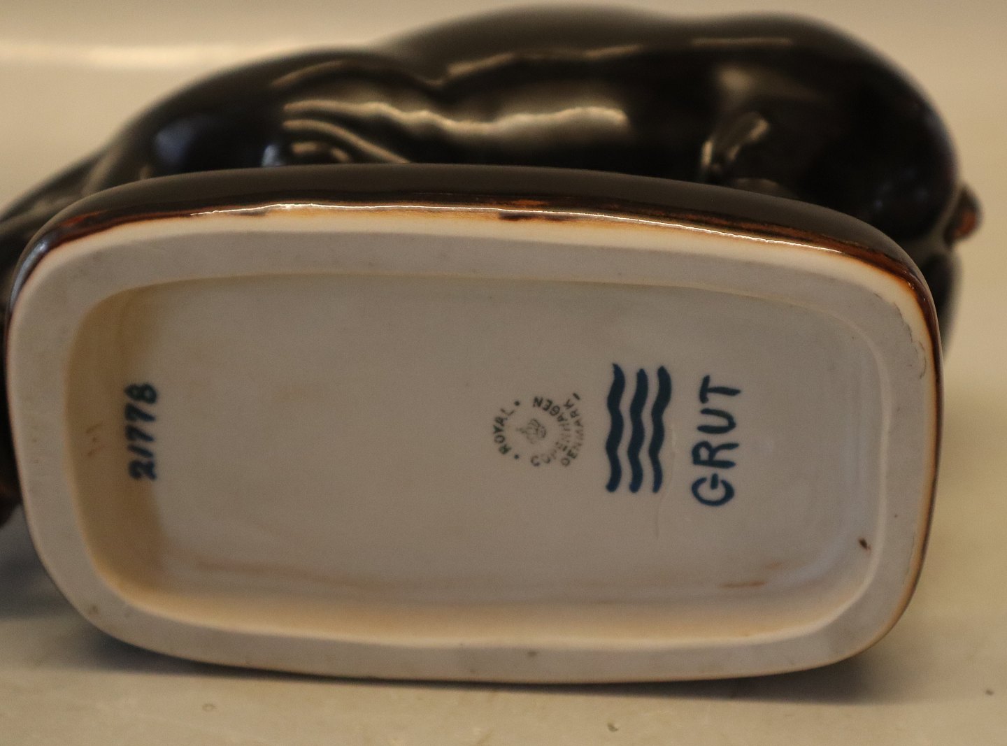 Beskrivelse: Royal Copenhagen stentøj 21778 Kgl. Dværgflodhest Stentøj Højde 16,8 cm Jeanne Grut maj 1960 I fin og hel stand