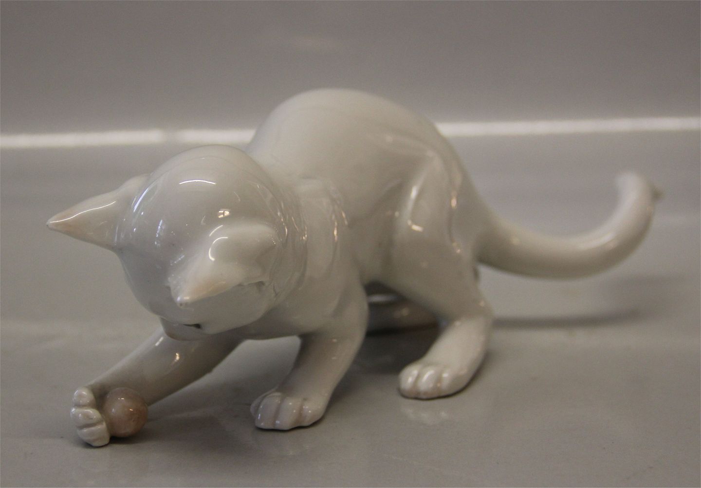 Beskrivelse: Bing & Grøndahl B&G 1555 - 1 Kat med bold 17 cm, hvid version I fin og hel stand.