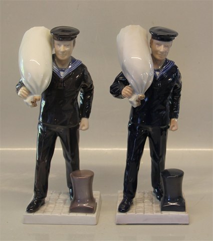 Beskrivelse: Bing & Grøndahl B&G 2446 Sømand med vadsæk - flåden 29 cm Kgl. Marine I fin og hel stand. Hæren, Søværnet, Frømandskorpset, Soldat