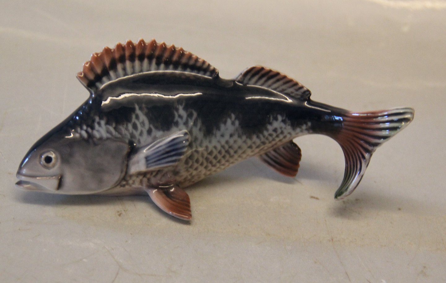 Beskrivelse: Dahl Jensen 1375 Aborre 16,5 cm (DJ). Mærket med kongelig krone og DJ Copenhagen i hel og fin stand.