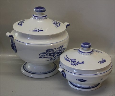 : Bing & Grøndahl Jubilæumsstellet 003 Stor terrin 4 l (666): Blå nellike, hvid, underglasur, form 595