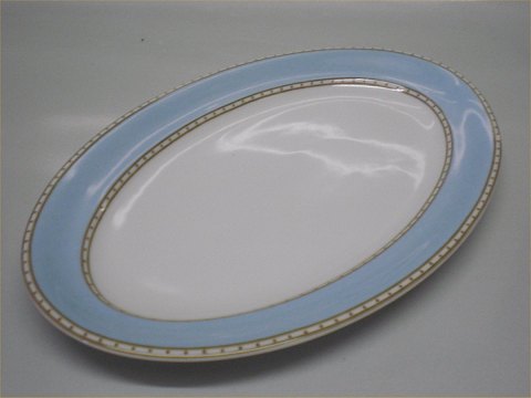 374 Fad ovalt 33 cm Kgl. Liselund Moderne stel i lys og mørk blå med guld. Design Diana Holstein 2001 for Royal Copenhagen