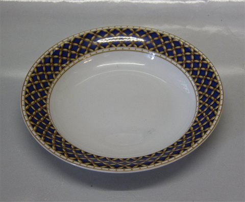 Mørkeblå flet 605 Dyb tallerken 22 cm Kgl. Liselund Moderne stel i lys og mørk blå med guld. Design Diana Holstein 2001 for Royal Copenhagen