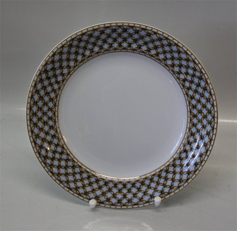 Lyseblå flet 625 Flad tallerken 25 cm, flet Kgl. Liselund flet Moderne stel i lys og mørk blå med guld. Design Diana Holstein 2001 for Royal Copenhagen