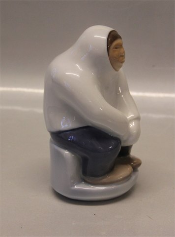 Beskrivelse: Bing & Grøndahl B&G 2413 Siddende grønlænder 13,5 cm, Karl Kristoffersen Inuit inspiration I fin og hel stand.