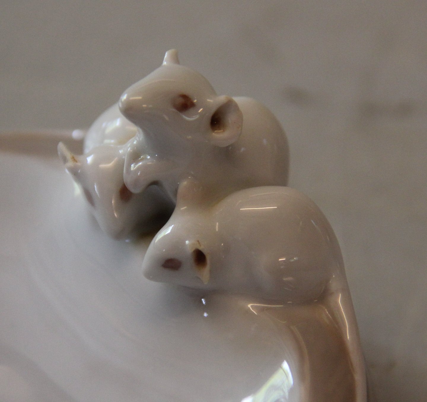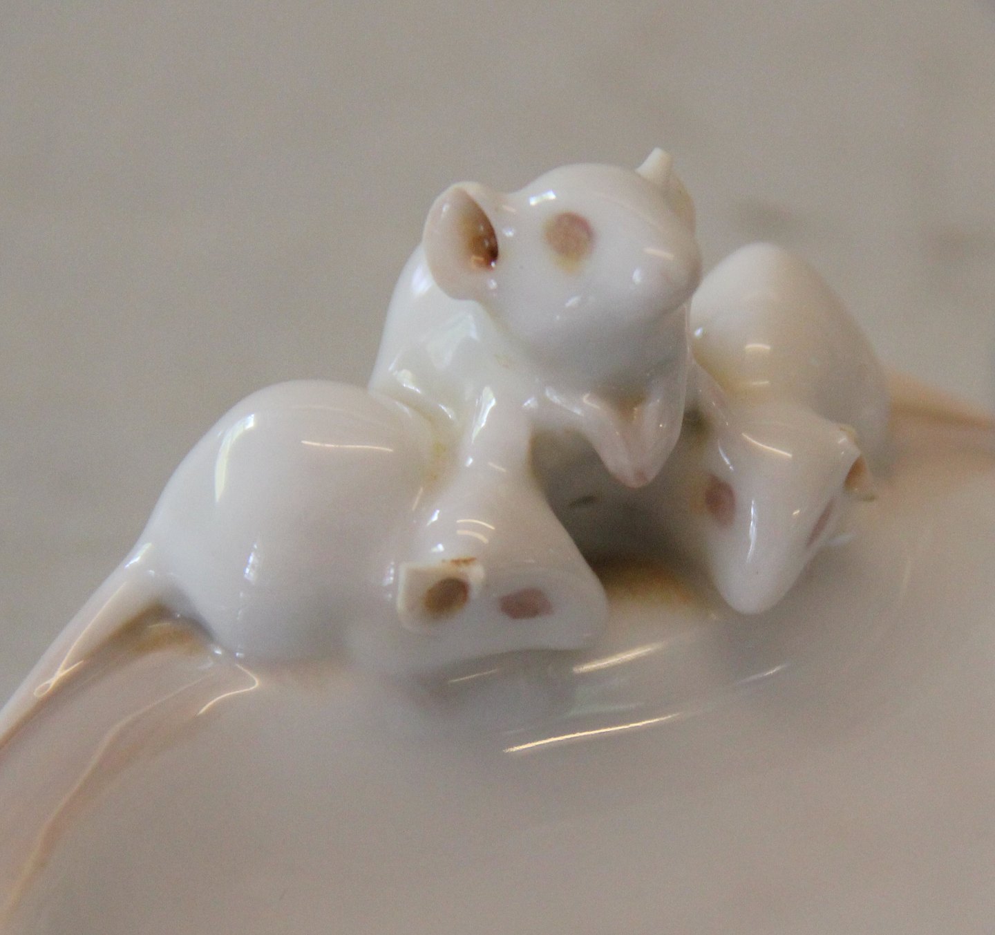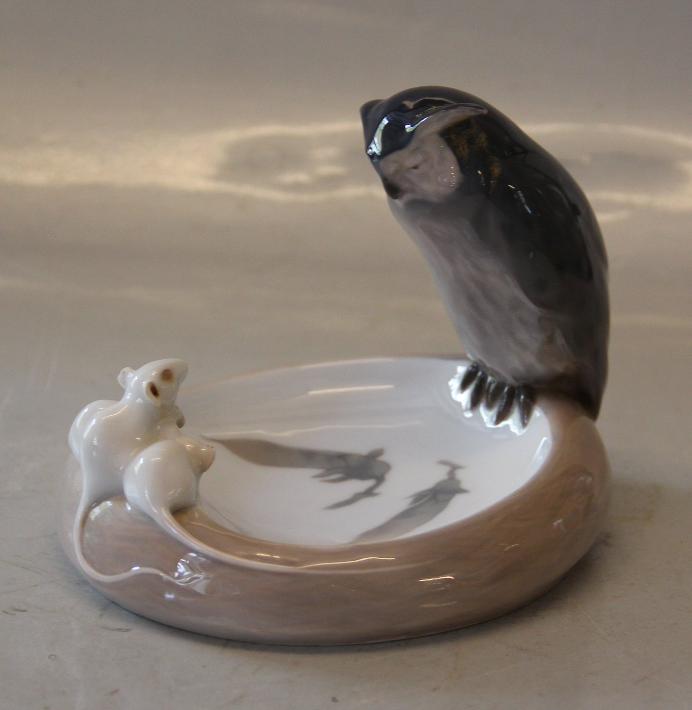 Kgl. figur fra Royal Copenhagen 610-1050 Kgl. Hornugle og tre mus på skål Christian Thomsen 1904 14 x 13 cm