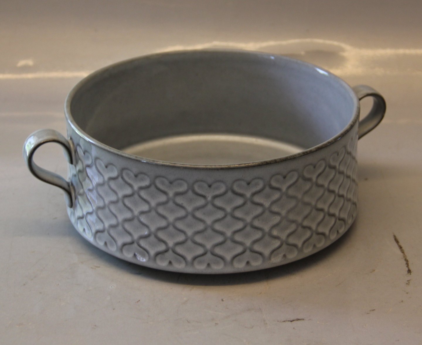 512 Lågfad 2,5 l / 8 x 19 uden låg og hanke (13 x 26 cm med hanke og låg B&G Grå Cordial Quistgaard Nissen Kronjyden stentøjsstel. I fin og hel stand. Bing & Groendahl. Stemplet Kronjyden eller Bing & Grondahl Copenhagen Stoneware: Designet for Kronjyden, Nissen af Jens Harald Quistgaard IHQ