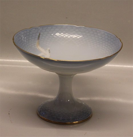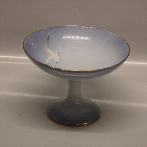 B&G Mågestel med guldkant 064 Frugtskål på høj fod 14,4 x 20 cm