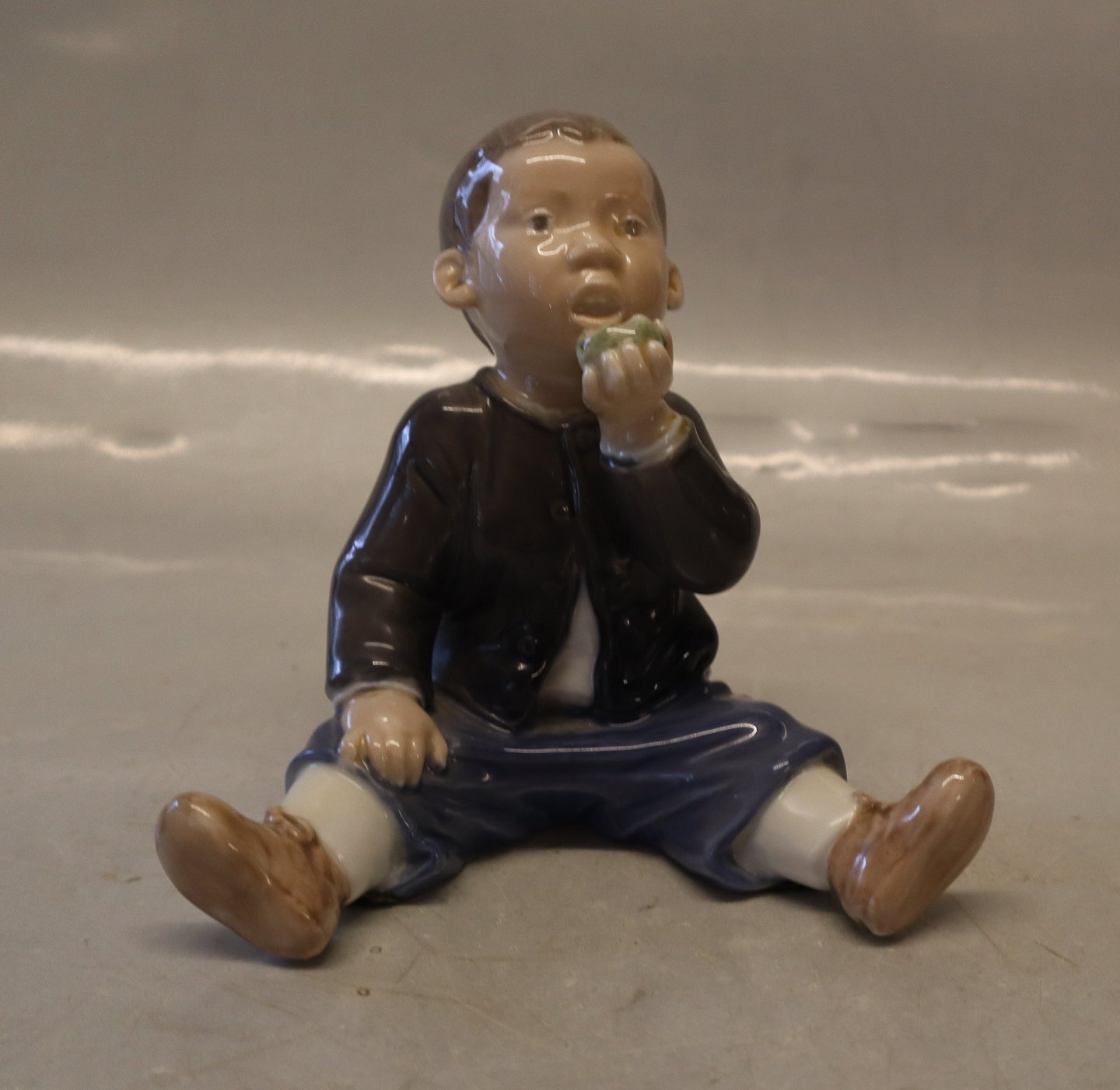Beskrivelse: Kgl. figur 4680 Kgl. Dreng spiser æble, John Galster 12,5 cm fra Royal Copenhagen I hel og fin stand
