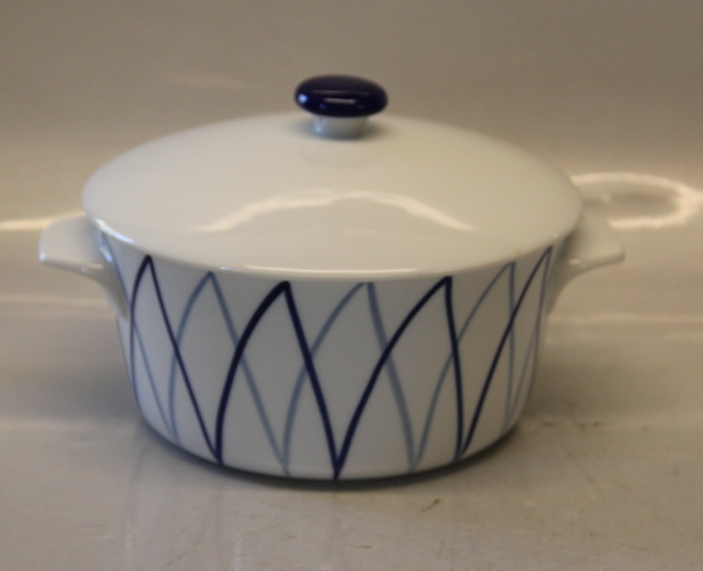 Gryde med to ører og låg 8,5 x 23 cm (D: 18 cm) Danild 40 Blå flamme eller Harlequin Retro spise- og kaffestel Lyngby Porcelæn - Porcelænsfabrikken Danmark KPM