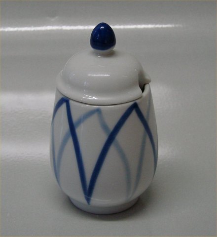Sennepskrukke med låg 9 cm Danild 40 Blå flamme eller Harlequin Retro spise- og kaffestel Lyngby Porcelæn - Porcelænsfabrikken Danmark KPM