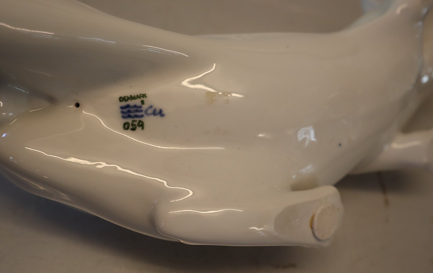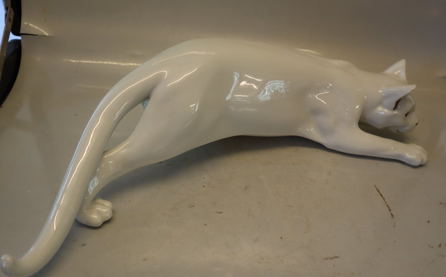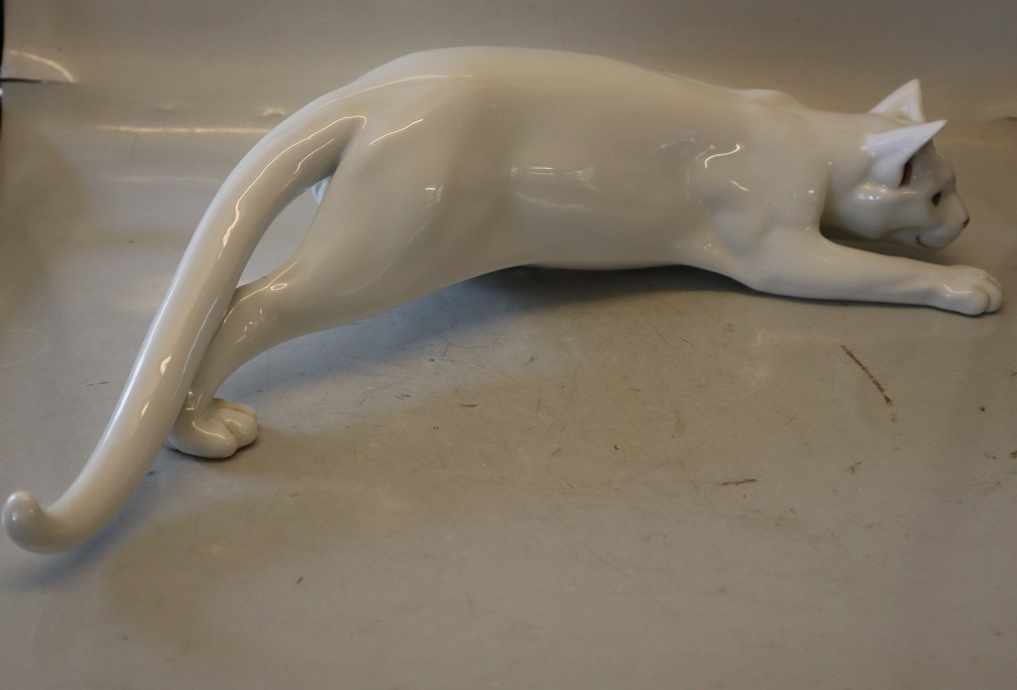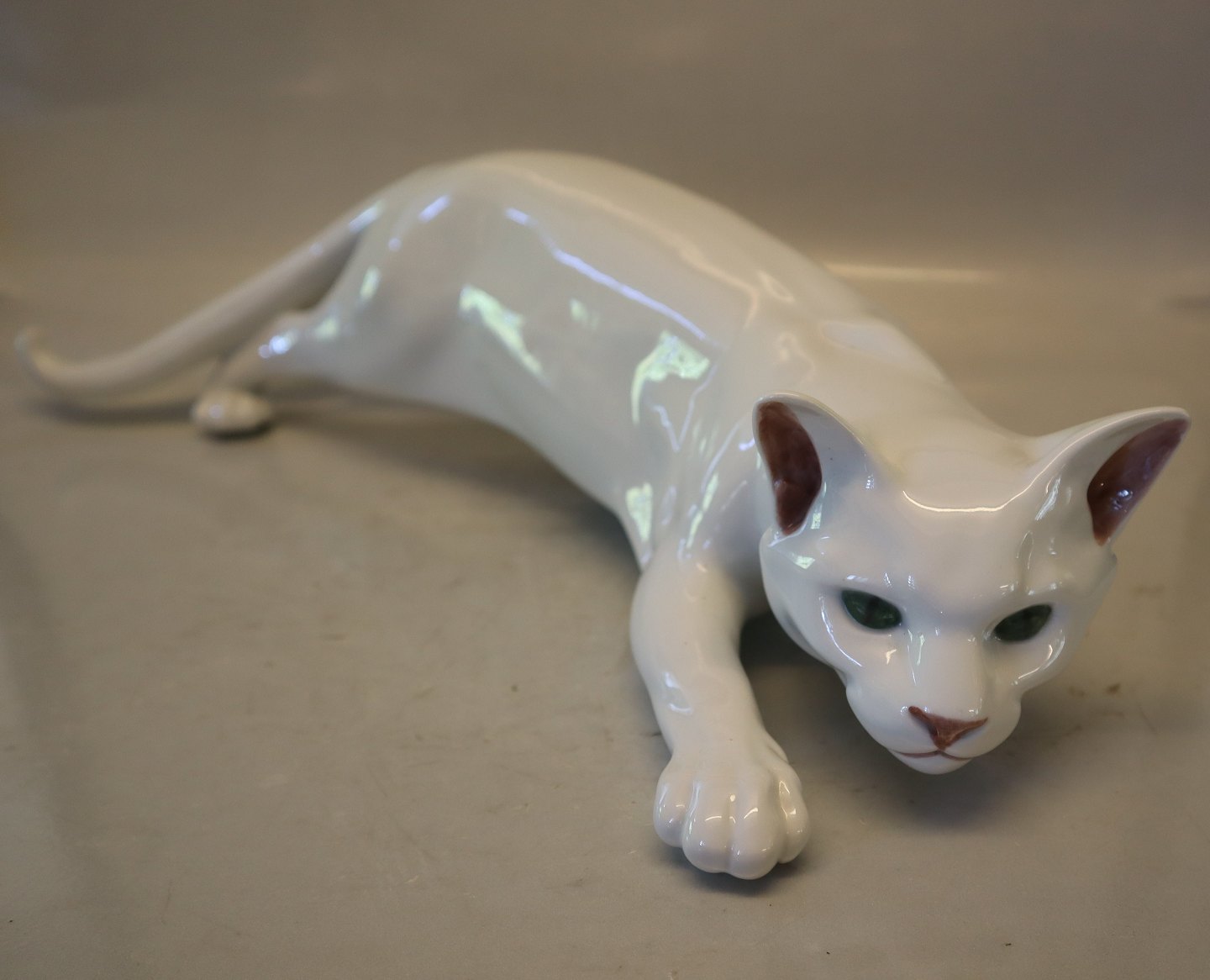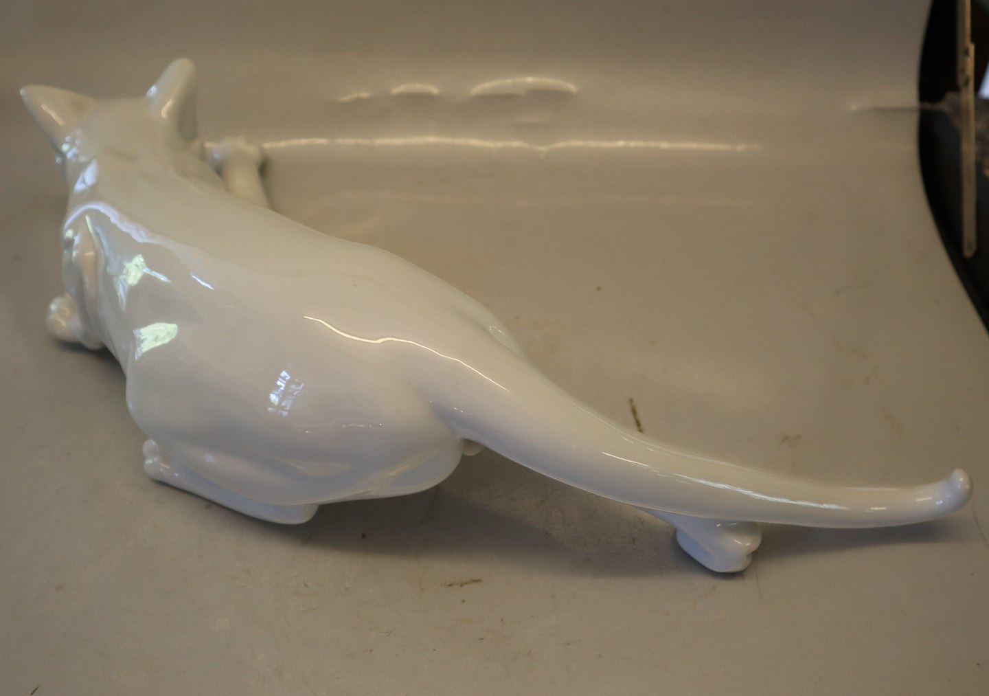 Kongelig porcelæn 0059 Kgl. Snigende hvid kat. Oprindelig designed C. F. Liisberg 1896 12 x 46 cm i fin og hel stand Gl. Nr. 473 Kgl. Snigende kat CFL 1896