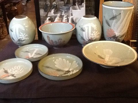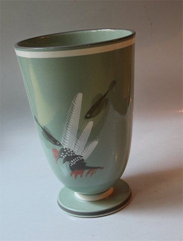Royal Copenhagen Aluminia fajance 1906-1540 Vase 25,5 cm, Levant Nils Thorsson 1938-1940 Kunststengods med tang / koral / fiskedekoration