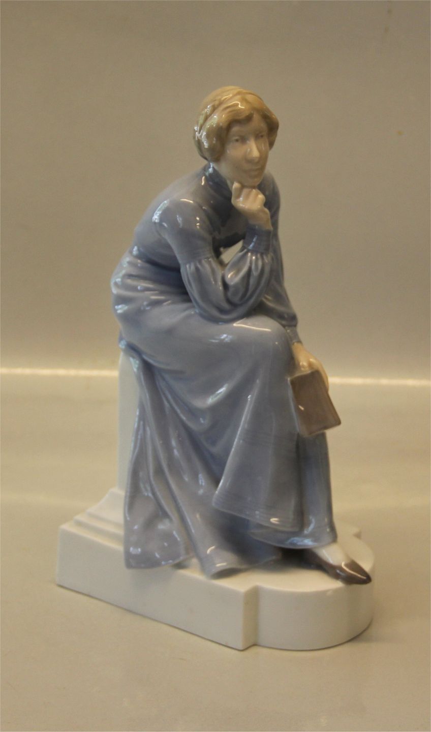 Beskrivelse: Kgl. figur fra Royal Copenhagen 0435 Kgl. Kvinde, der sidder og tænker Chr. Thomsen 1903 23 cm I fin stand 1. sortering Lidt ujævnheder ved bundkanten som kunne være en gammel reparation