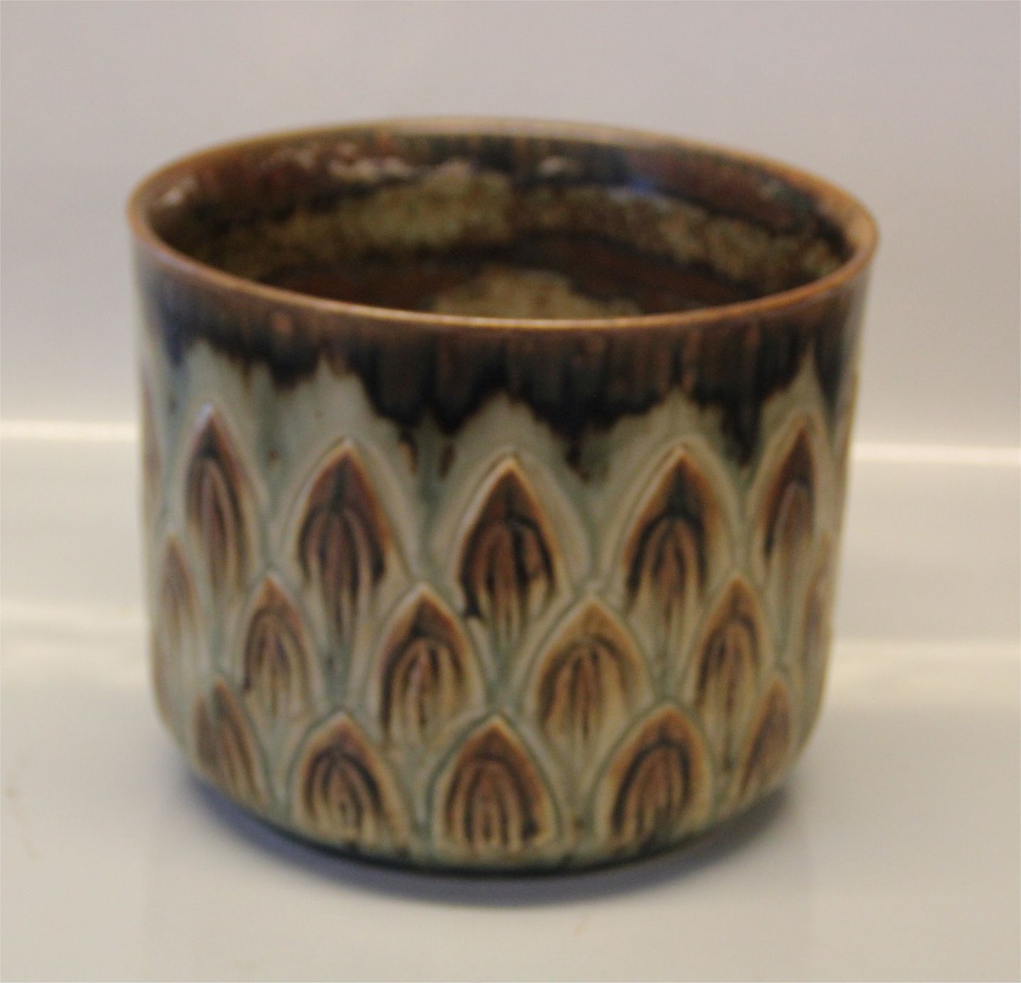 Kongelig Dansk Stentøj 22473 Kgl. Urtepotte skjuler, skåret af glæat 22447 15 x 18.5 cm November 1971 Gerd Bøgelund