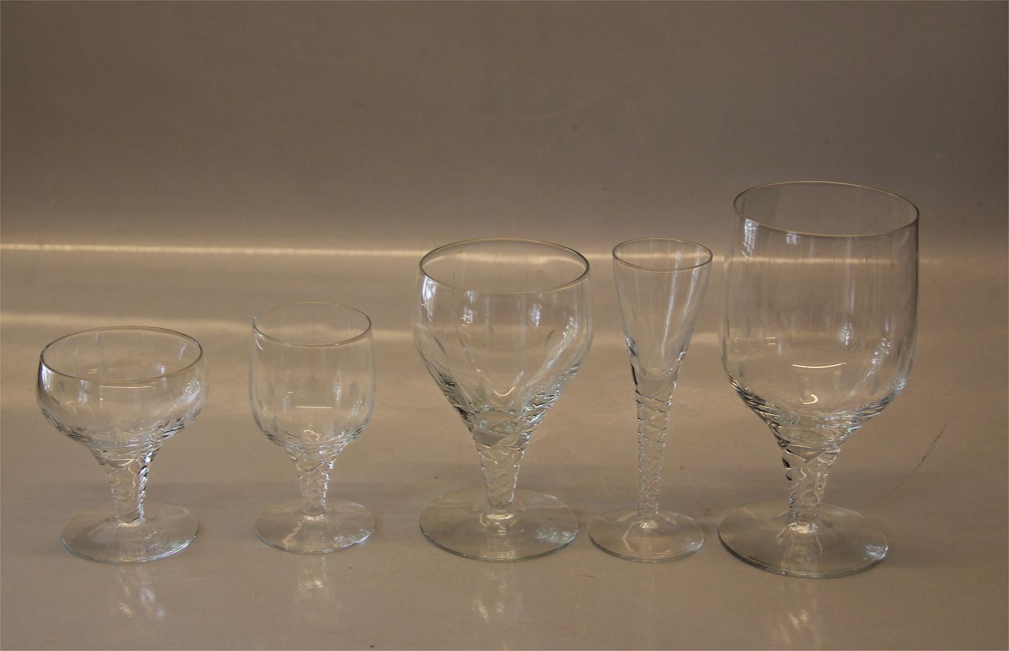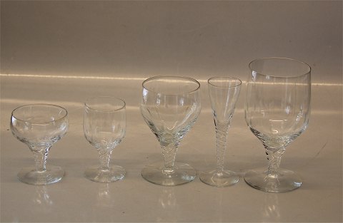 Beskrivelse: Minerva Bordservice Drikkeglas fra Holmegaard med slibninger og snoet stilk