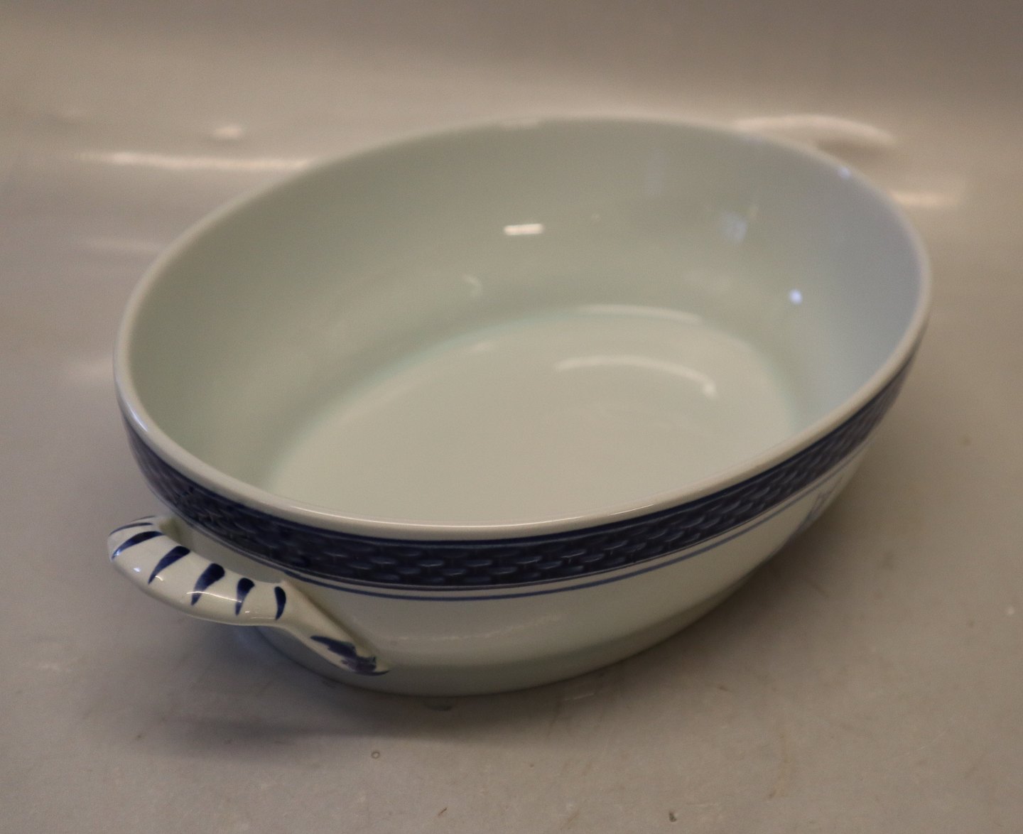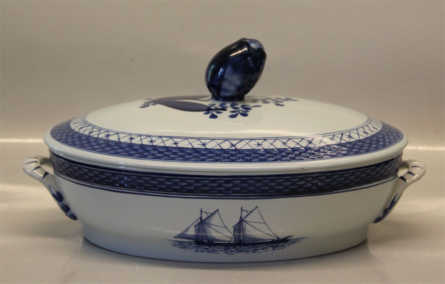 Royal Copenhagen Aluminia Tranquebar 0921-46 Lille lågfad 29 X 19 cm Skibsstellet I fin og hel stand Låget mærket 11-921