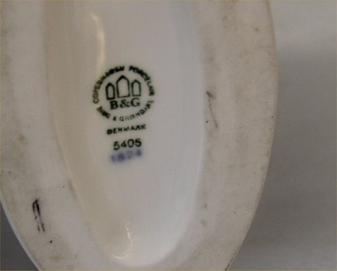 Description: B&G 5405 Oval modern vase with blue decoration 9 x 19 cm Else Kamp Jensen Bing and Grondahl Marked with the three Royal Towers of Copenhagen. Bing & Groendahl In mint and nice condition