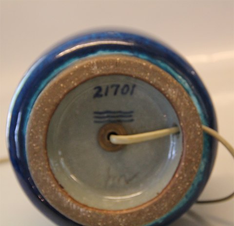 Beskrivelse: Royal Copenhagen stentøj 21701 Kgl. Lampefod, rund med relief 24 cm Jørgen Mogensen juni 1959 Tyrkis I fin og hel stand